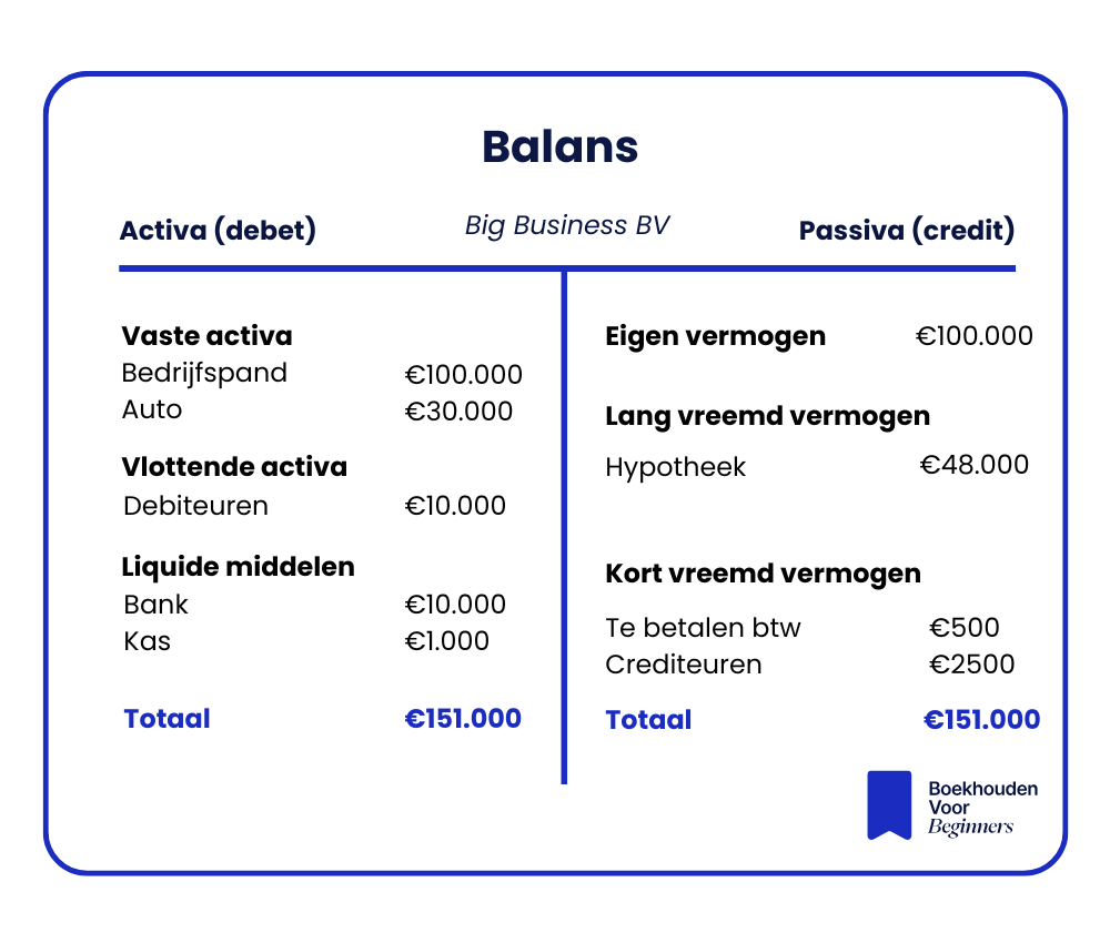 - Linkerkant balans (debetzijde) vs. Rechterkant balans (creditzijde)