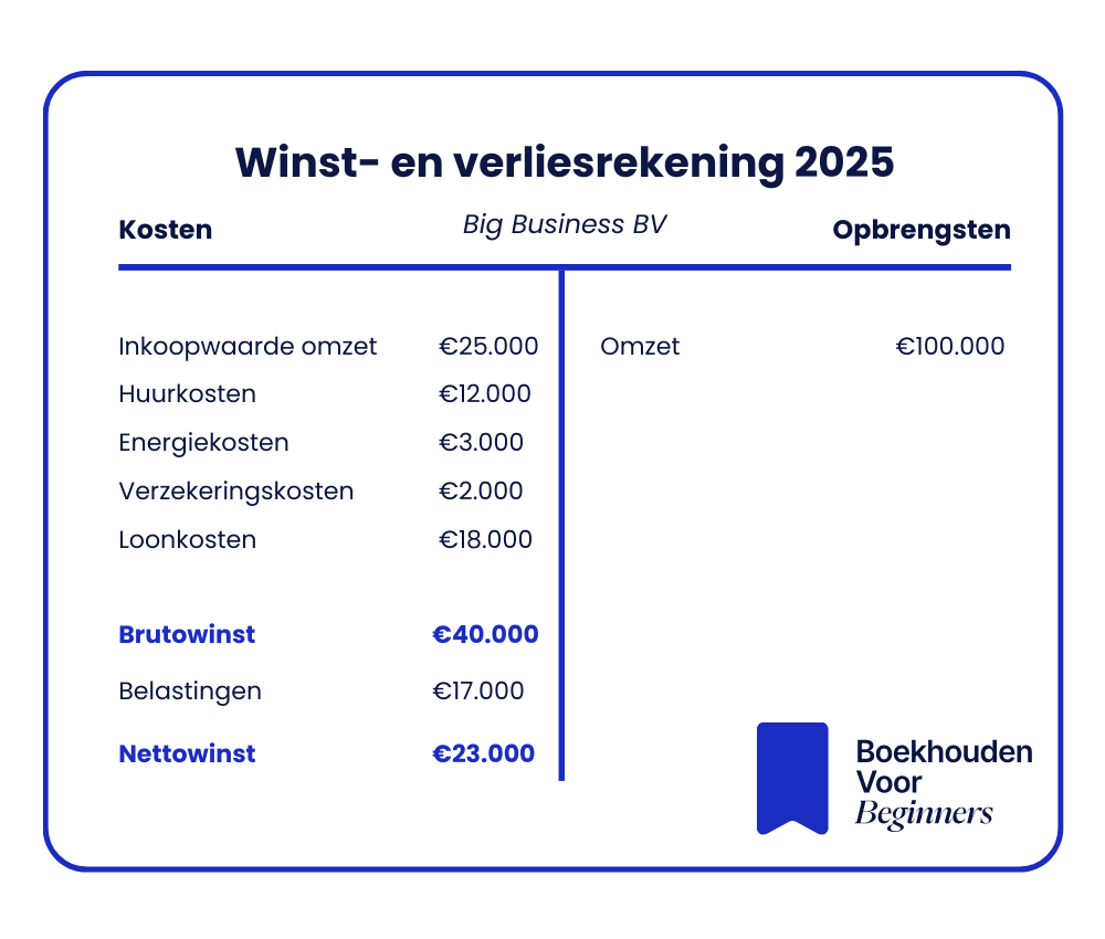 Hieronder zie je een voorbeeld van een winst- en verliesrekening in 2025.